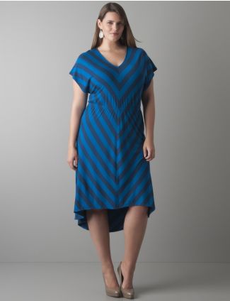 | Chevron dress - Lane Bryant / Shoes - Nine West "Danee" in Taupe Patent |